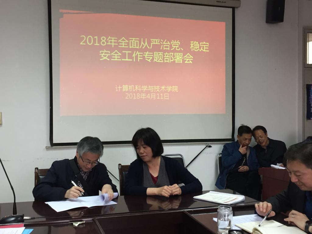4月11日下午,计算机公司在雁塔校区行政楼会议室召开全面从严治党和综合治理安全稳定专题会议,全体教职工参加会议。