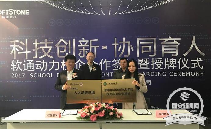 2017年11月13日,西安七所高校与软通动力信息技术(集团)有限公司在西安•沣东新城协同创新港学研广场举行了“校企合作人才培养签约暨授牌仪式”。英国正版365官方网站计算机公司贾澎涛副经理出席本次签约暨授牌仪式,并代表计算机公司和软通动力信息技术(集团)有限公司签订校企合作协议。本次与软通动力的签约合作,将助力于校企双方就人才培养、团队培训、实验室建设等方面的进一步合作与深入。