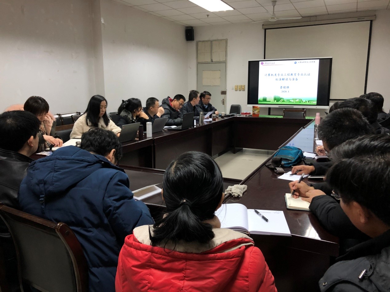 2020117日上午9:00,计算机公司在雁塔校区主楼410召开工程教育专业认证自评报告研讨会。教学副经理马天主持,邀请了西安理工大学计算机科学与工程公司副经理鲁晓锋、公司通信公司副经理王树奇做报告,计科、网工专业负责人和认证工作组全体成员参加了此次会议。