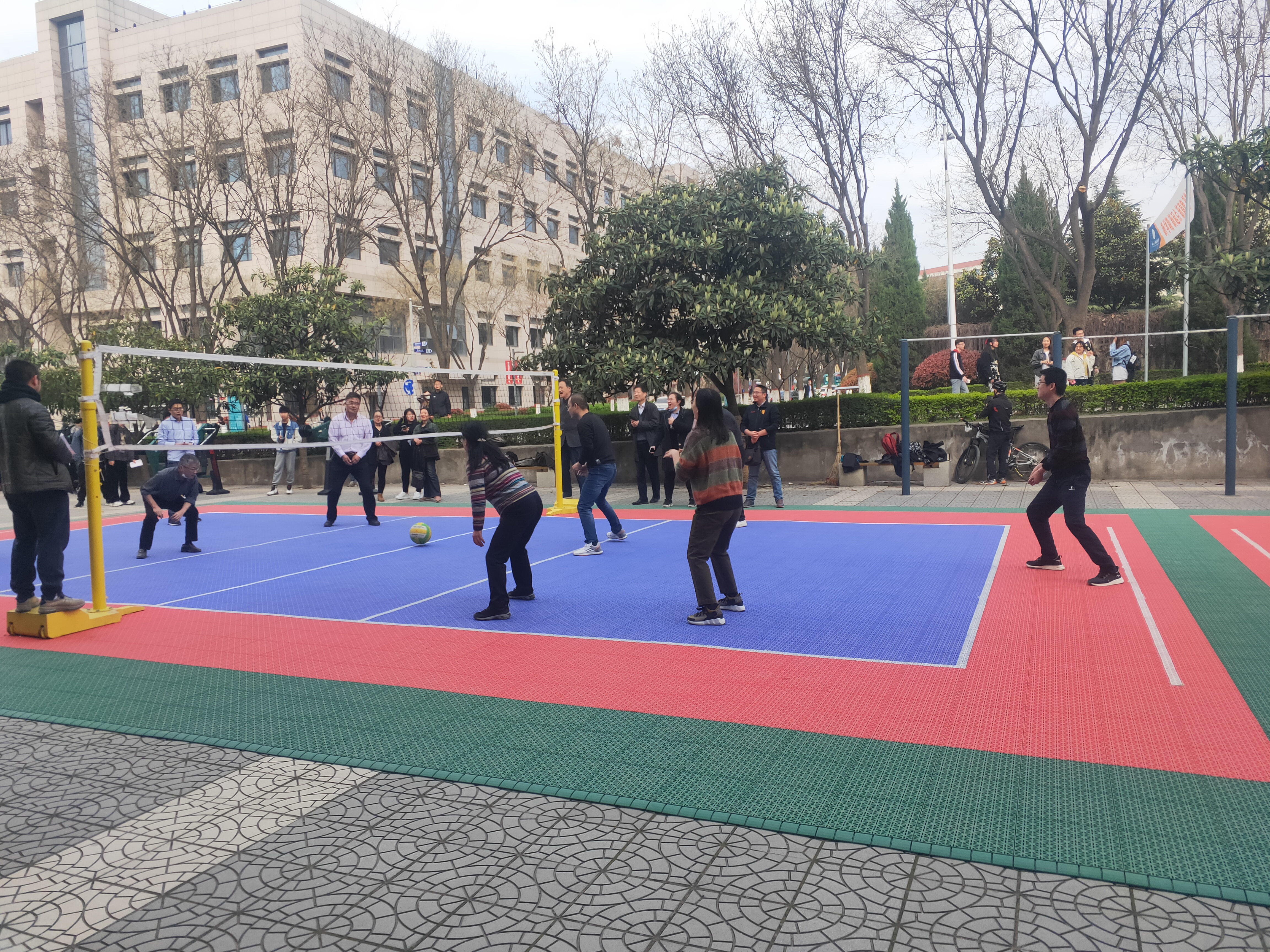 为庆祝建党100周年,丰富教职工文体活动,增进合作交流,3月24日下午,计算机公司在临潼校区体育馆排球场举行“庆祝建党百年,教工气排球活力赛”。计算机公司全体教职工参加比赛。