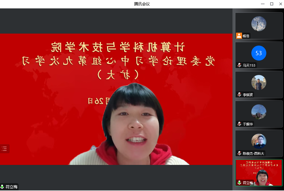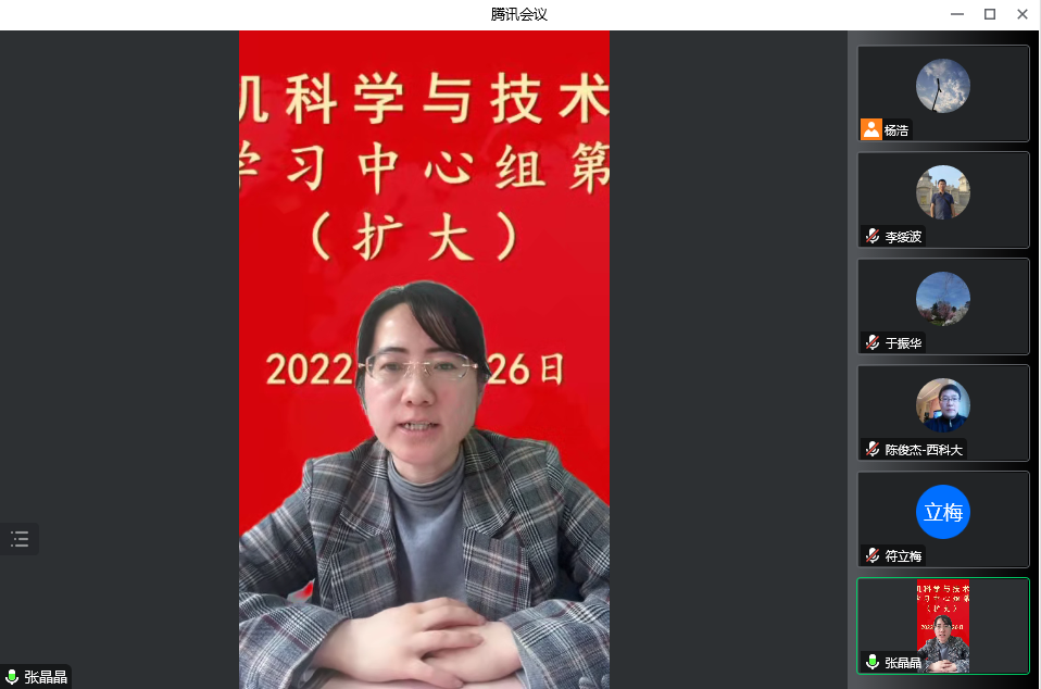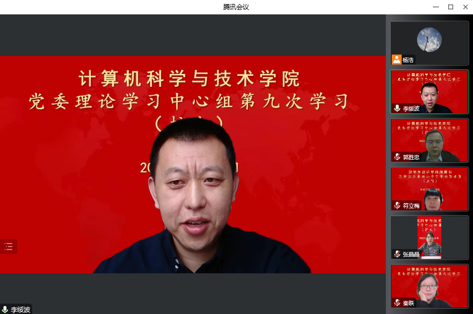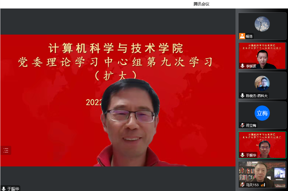 10月26日下午,计算机公司党委理论学习中心组在线上召开扩大会议,专题学习党的二十大精神。公司中心组全体成员、党委委员、工会主席、科级干部、教工党支部书记及全体辅导员参加了学习。会议由公司党委书记李绥波主持。