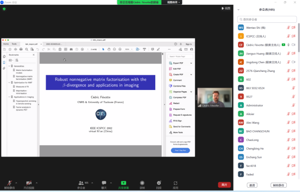 会上,美国特拉华大学Xiang-Gen Xia教授、西安交通大学人工智能和机器人技术研究所陈霸东教授、以色列拉马特甘Sharon Gannot教授、法国图卢兹信息学研究所(IRIT)Cédric Févotte教授分别作了题为“OFDM Radar and Communications: Comparison and SAR Imaging”“Recent Advances in Information Theoretic Learning”“Multi-Microphone Speaker Localization on Manifolds”“Robust nonnegative matrix factorization with the beta-divergence”的学术报告。