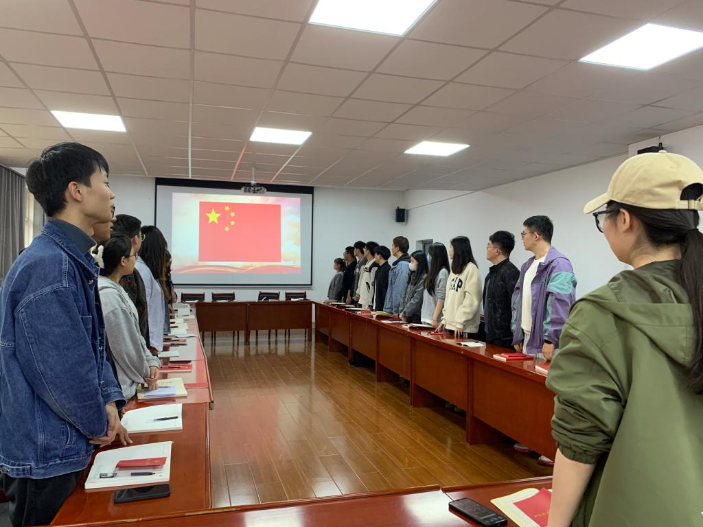 会上,全体党员奏唱国歌,重温入党誓词。