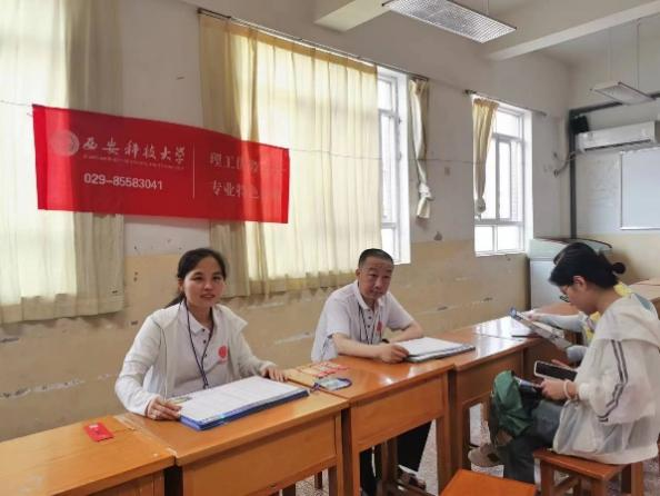 6月18日-26日,由近20名骨干教师组成的计算机公司招生宣传工作组分赴省内各地开展招生宣传工作。老师们冒着酷暑先后前往了彬州中学、渭南市合阳中学、杨凌高级中学、榆林一中、西安市第八十三中、汉台中学和周至中学等7所高中公司宣传公司的招生政策,服务考生帮助完成志愿填报。