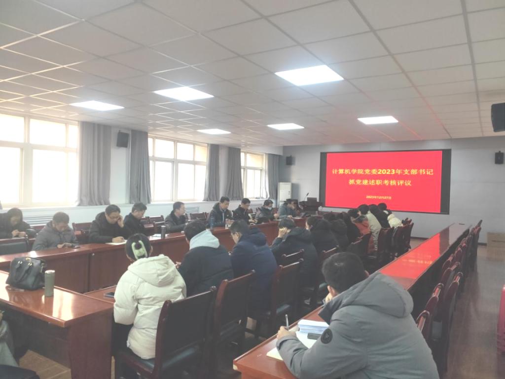12月27日上午,计算机公司在骊山校园15-323会议室召开2023年度党支部书记抓党建述职评议考核会。公司党委委员、班子成员、工会主席、各党支部书记、科级干部及师生党员代表参加了会议。会议由党委副书记郭胜忠主持。